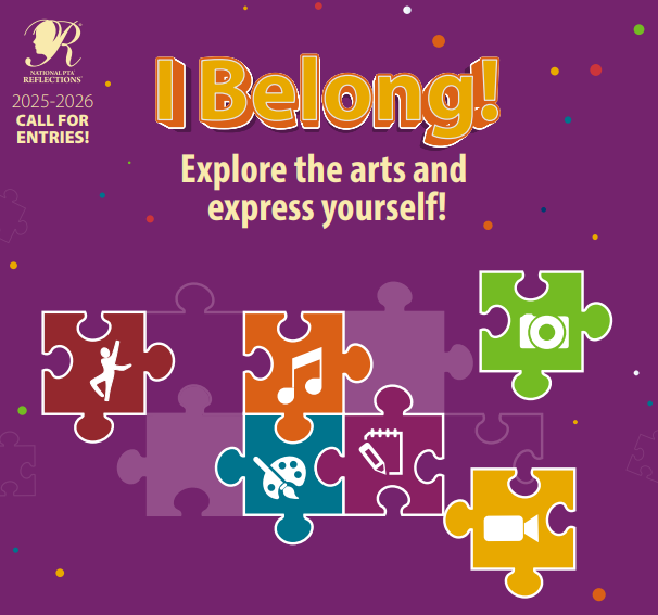 PTA Reflections is a nationally acclaimed student art program. Students of all grades and abilities may participate by submitting original pieces of work in six categories: dance, musical composition, visual arts, film, literature and photography. Each year, students create work based on a theme. This year’s theme is: I Belong!